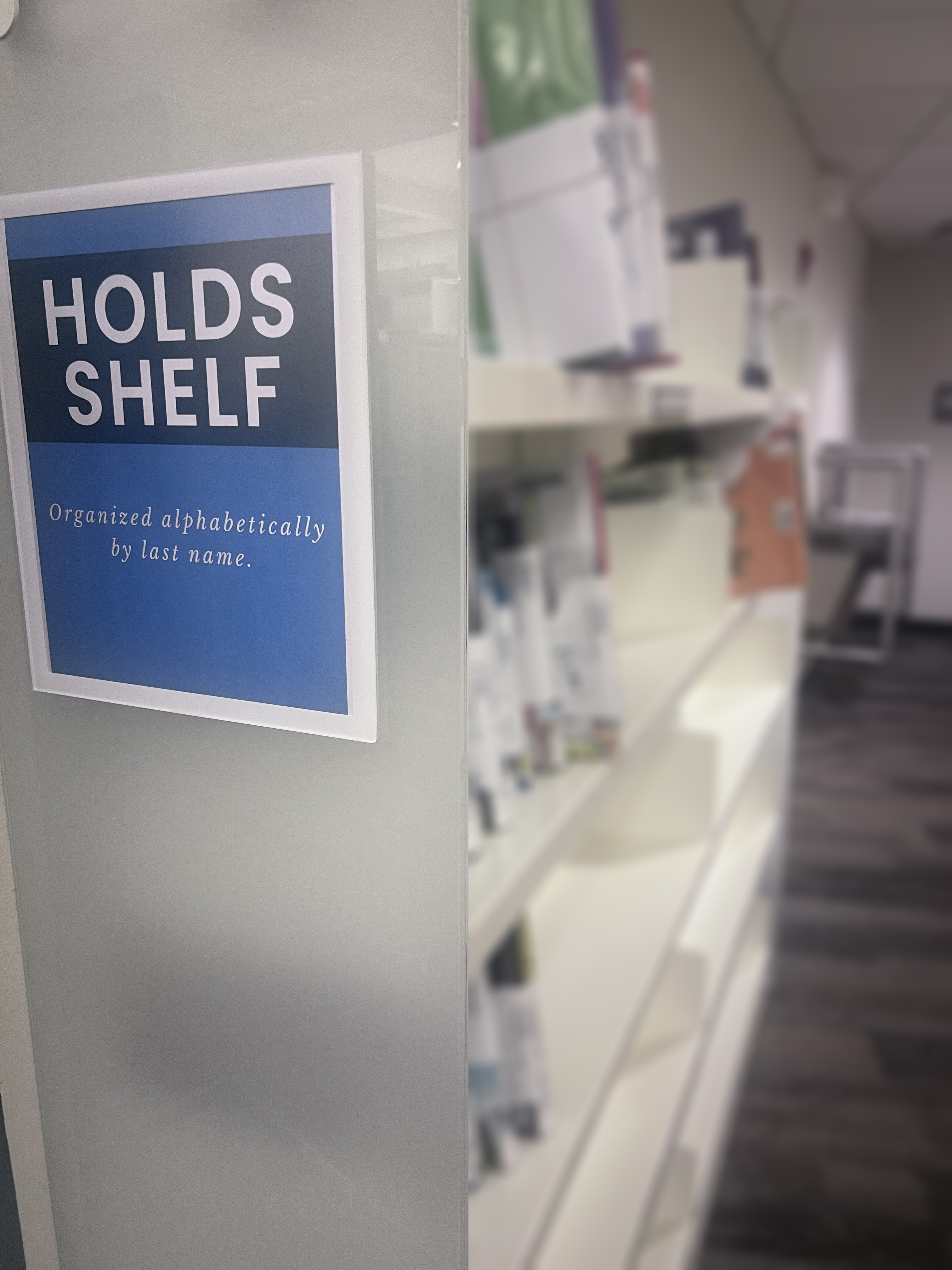 - Let us pick the books off the shelf for you and have it by our convenient Holds Shelf near the front entrance.