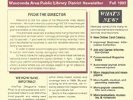 09/1992 -, the first issue of Focus, a 4-page newsletter promoting library services and events, was published and mailed to every household and business in the district.