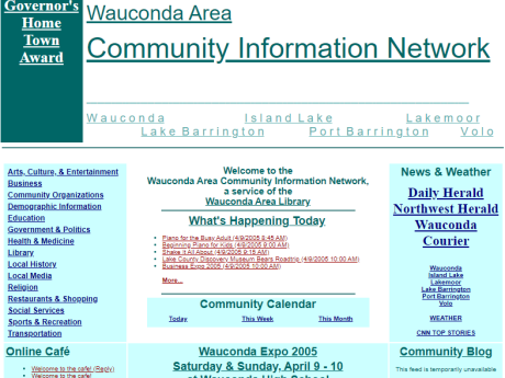 The Wauconda Area Library was named Library of the Year in March, 2005, by the North Suburban Library System (NSLS).