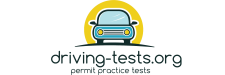 driving-tests.org cartoon car logo with "permit practice tests" tagline